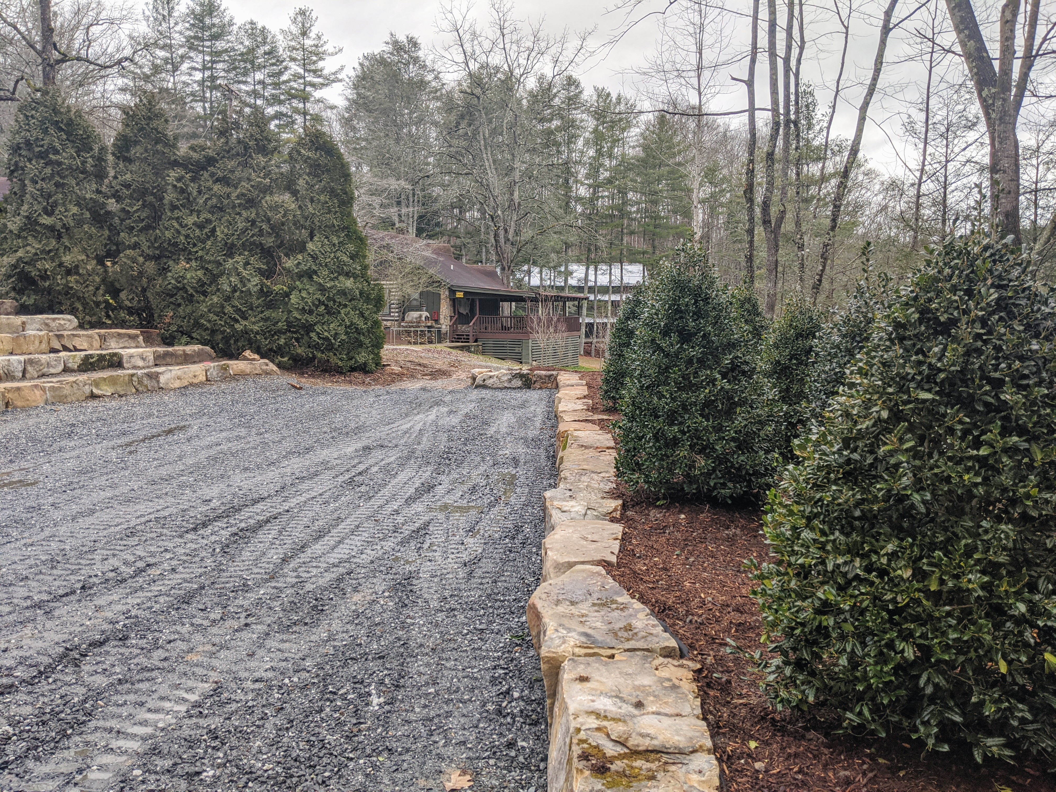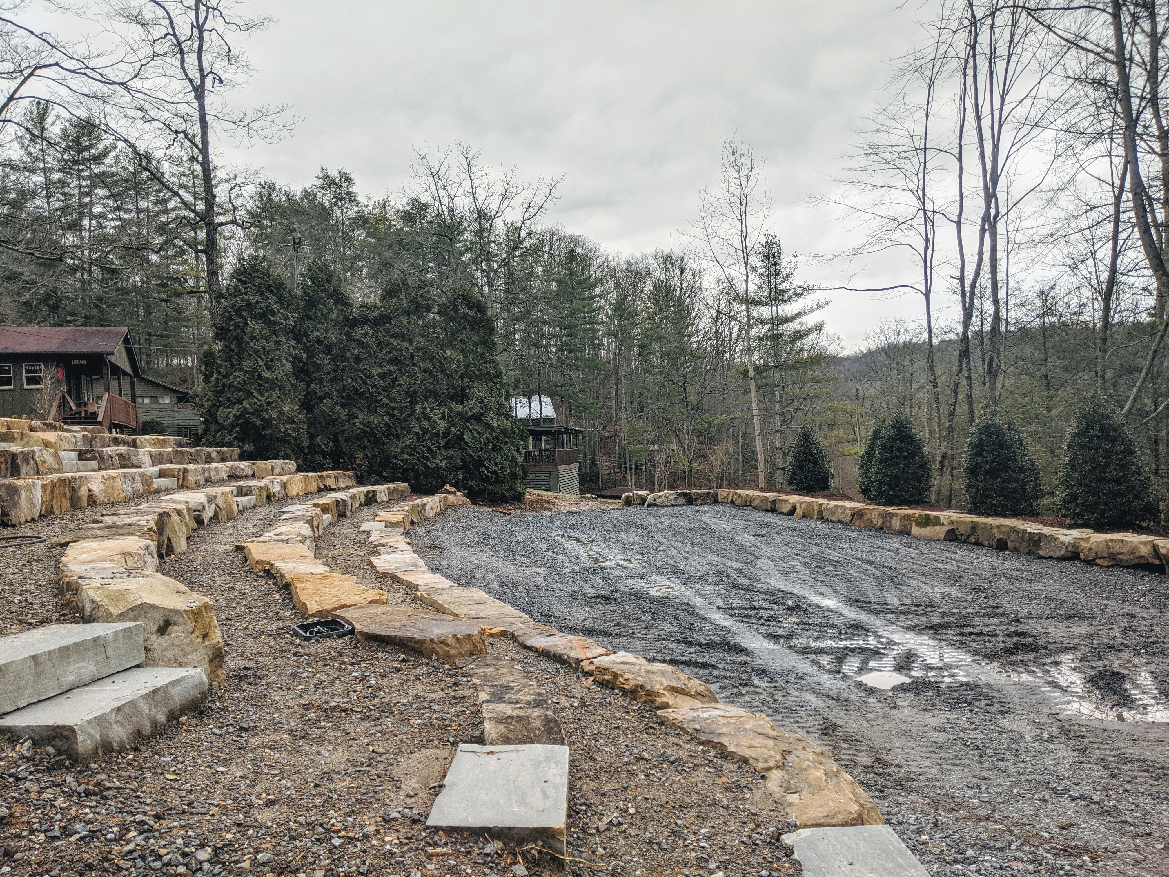 Below, you can see the very beginning of the Gratitude Grove (the area just above the Assembly Court, between the Summer Office and Camp Store). And check out the view from up top! Even the backdrop has been improved with a stone wall and a row of evergreens … although, sadly, we are NOT opening a Christmas tree farm ;)