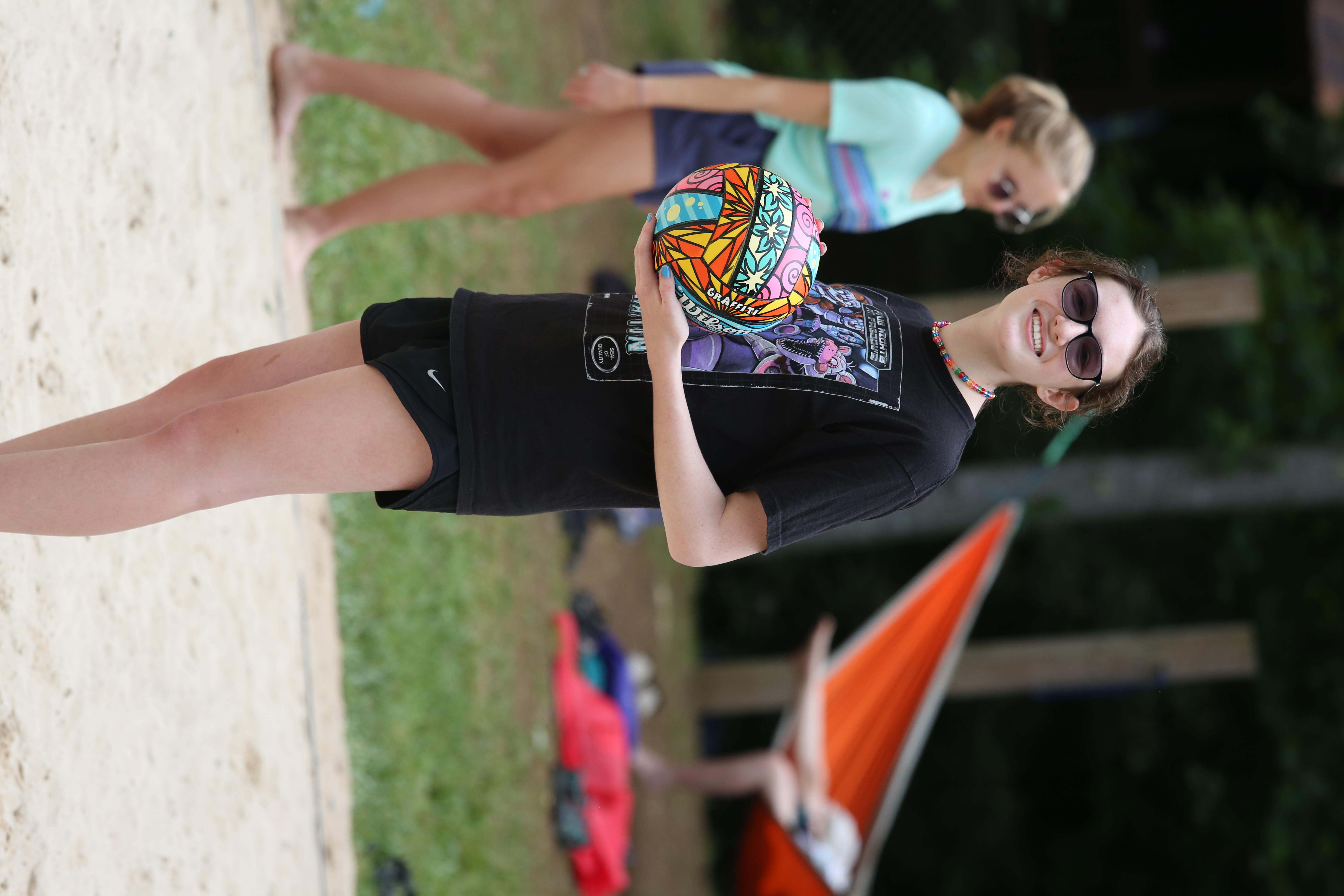 - Meals: Today we started our mornings off with hot pancakes, sausage patties, scrambled eggs, and fresh fruit. For lunch we had a camp favorite: chicken tenders and fries with some veggies and hummus. It’s Thursday, which means we had cookout for dinner! The entire camp enjoyed hamburgers, hotdogs and veggie burgers, pasta salad, chips, and watermelon slices out on the land sports field. Everyone cheered when the Dolly’s trolley drove down and served delicious scoops of ice cream. Yum!