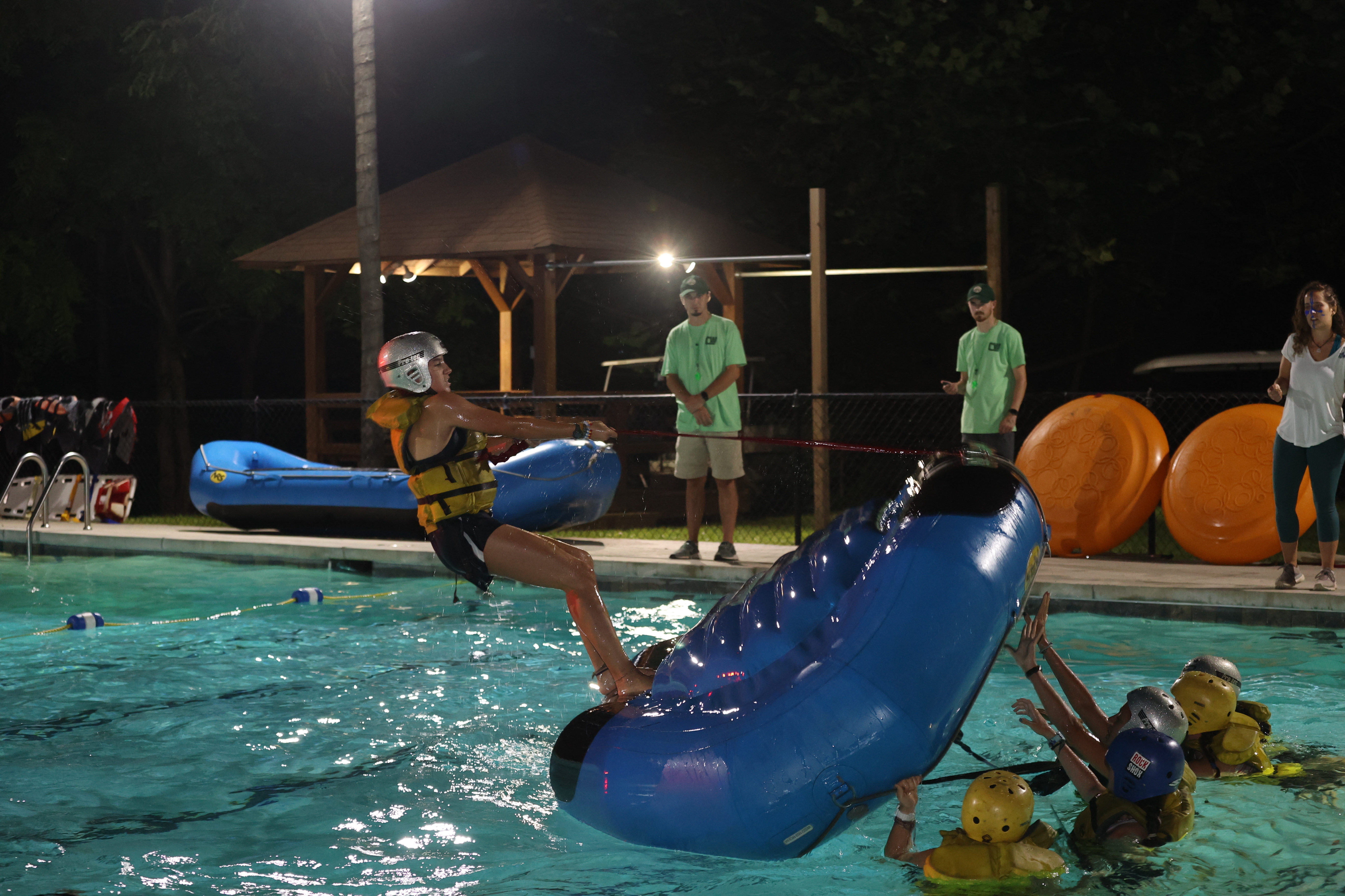 Tonight’s evening programs included one of the oldest EPs of Color War, Rope Burning, and the newest EP that was added in 2018, Water Wars. Water Wars was held at the pool and included some old events like the hang and six inches, but showcased many new events like raft tug of war, raft guide relay and corkl relay.