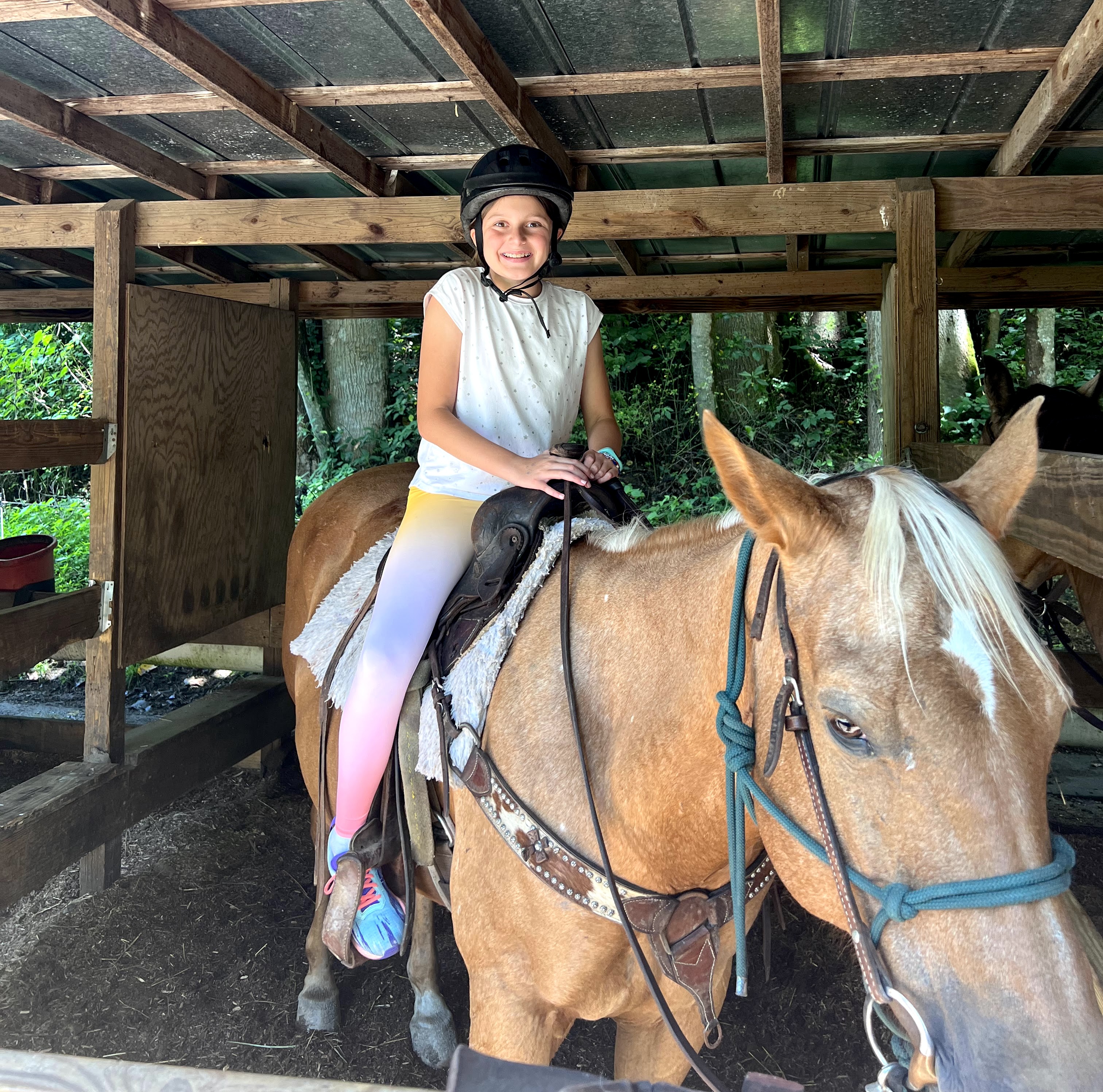 Horseback riding is always a favorite at Camp Highlander, and campers have two ways they get to experience this off-camp trip.