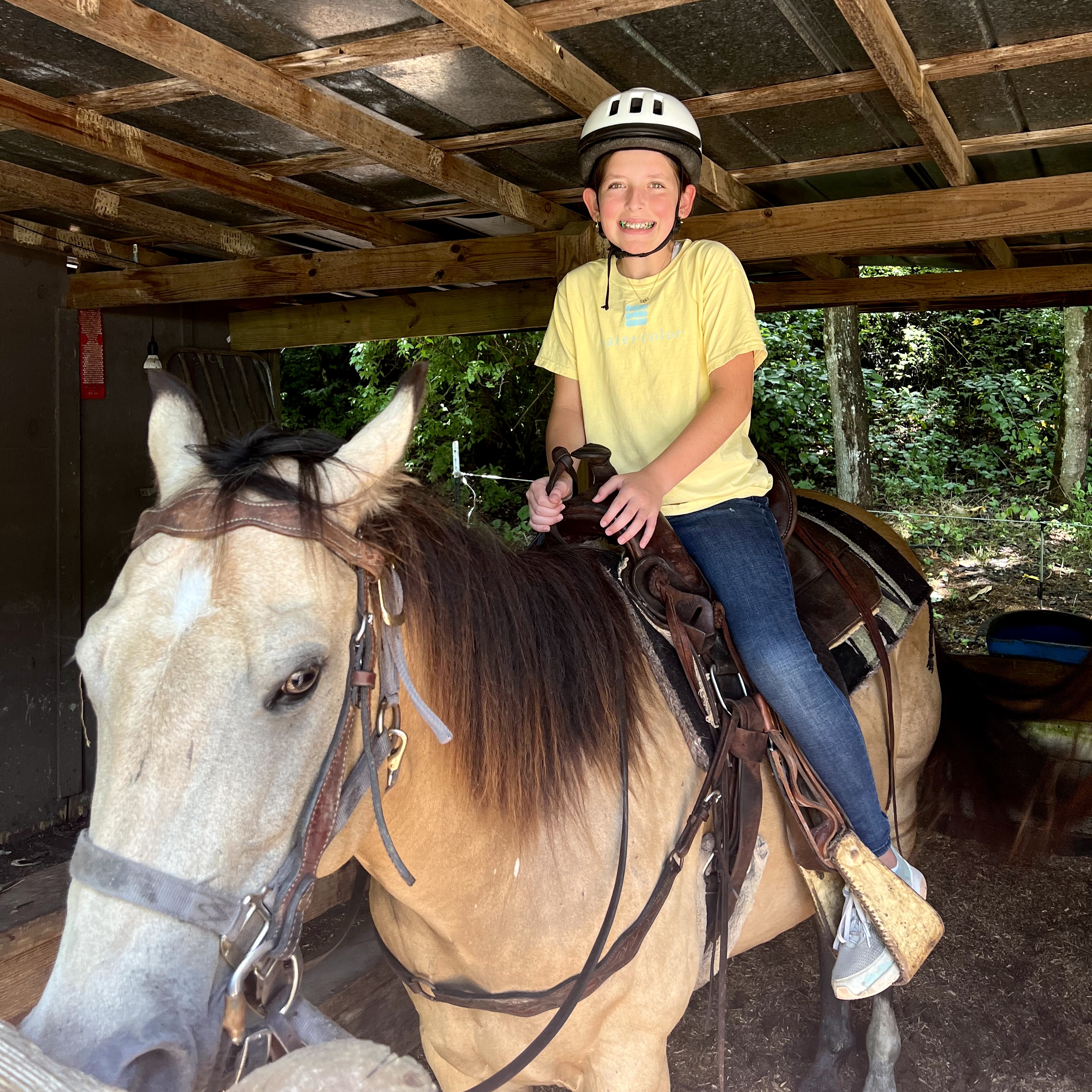 In addition to our camper choice rides, our intermediate camp cabins will be scheduled for a horse trip once per session. This will be a special off-camp trip only available to intermediate campers to enjoy as a cabin group. Cabins will be scheduled for a morning or afternoon trip that will include a one-hour trail ride in Pisgah National Forest!